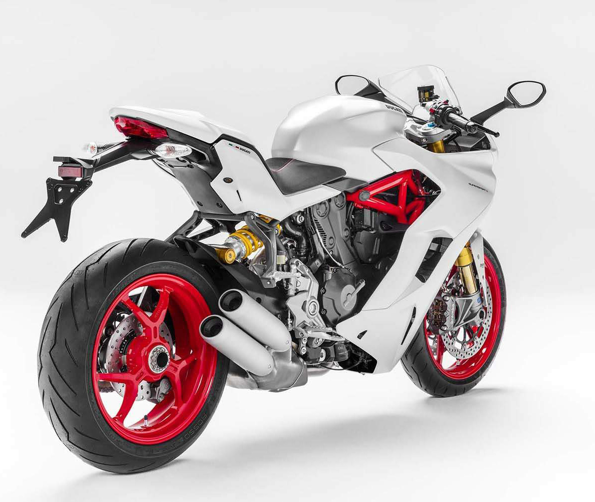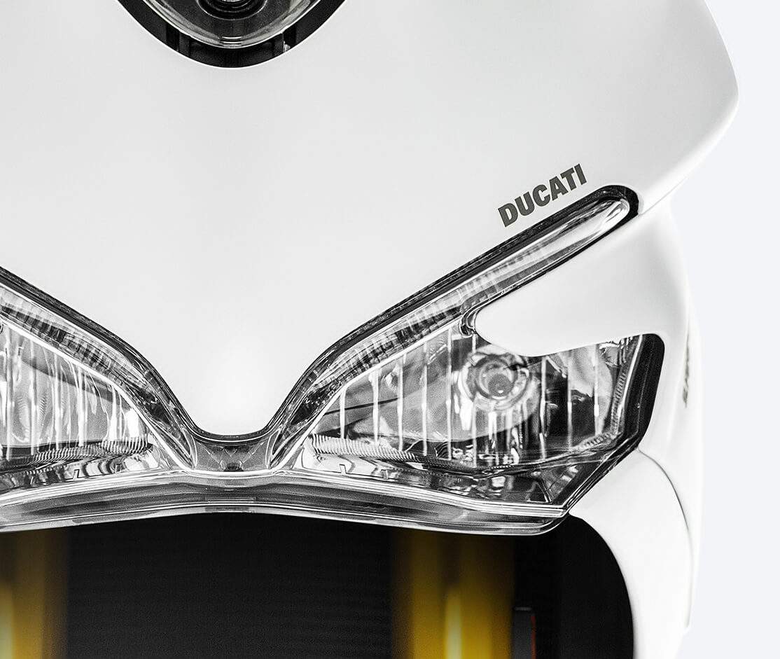 The lines of the SuperSport create dynamic shapes, visually compact and light. The design, sporty and elegant, integrates elements typical of Ducati sports bikes such as the single-sided swingarm, sculpted tank and compact lateral silencer with two overlapping exits, which leaves the rear wheel, with its �Y� spoke design, fully visible.